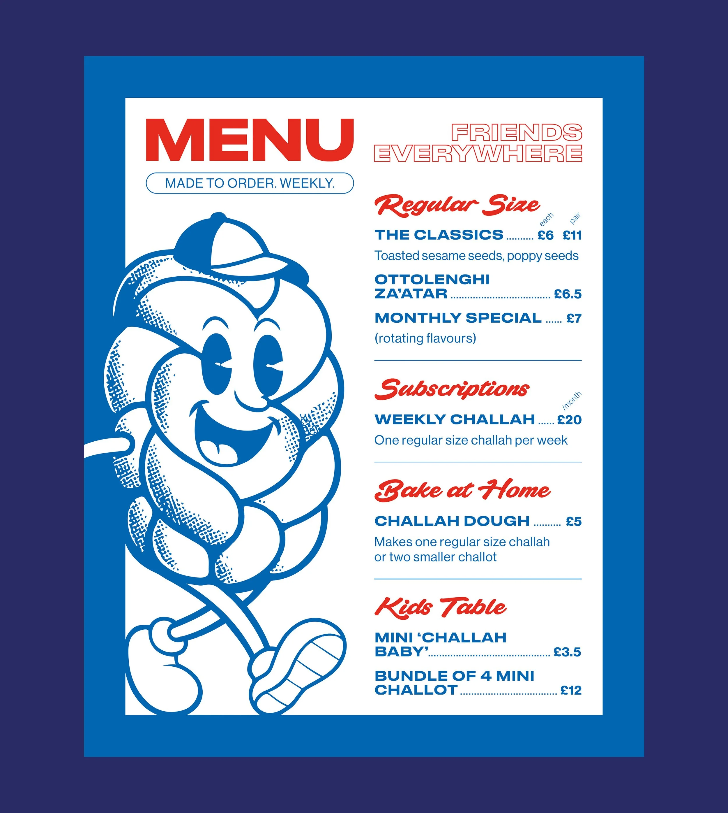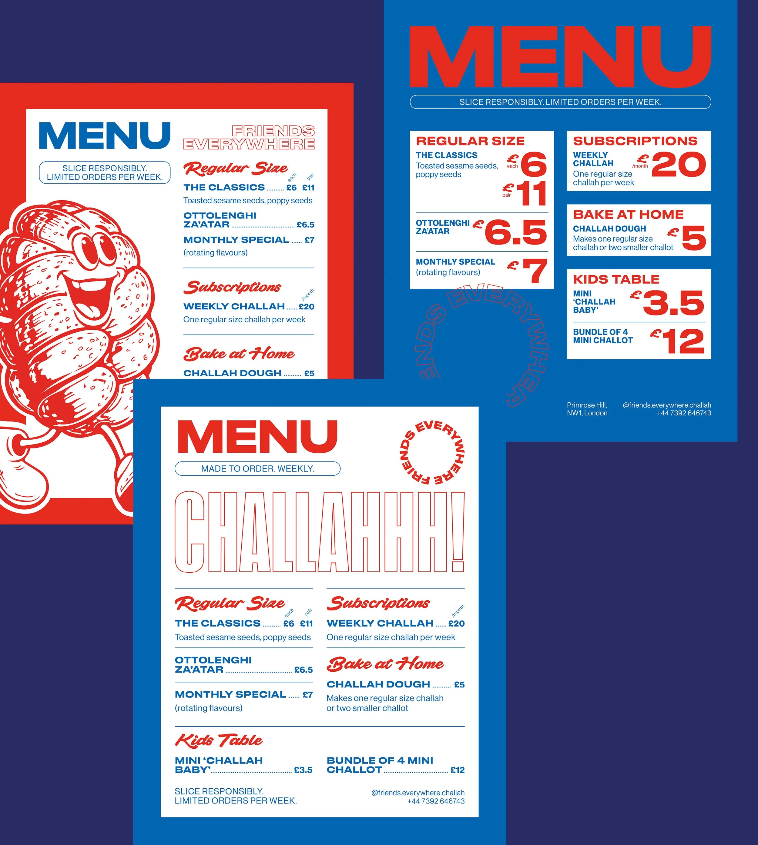 My friend Claire makes the world’s best challah. She started selling it to friends, family and people in her neighbourhood. I designed the brand identity, illustrations, posters, menus and social posts.
